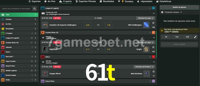 A aposta 61t oferece aos jogadores a experiência mais conveniente de apostas em eSports!